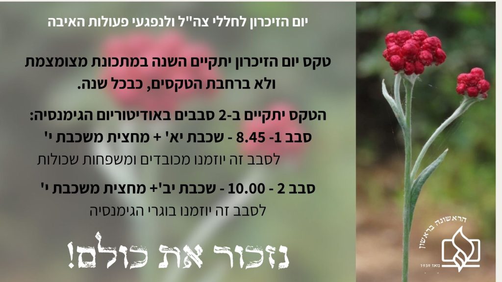 טקס יום הזיכרון יתקיים השנה במתכונת מצומצמת ולא ברחבת הטקסים, כבכל שנה.